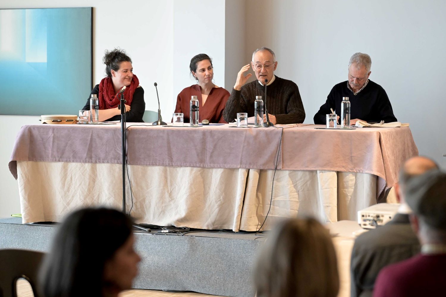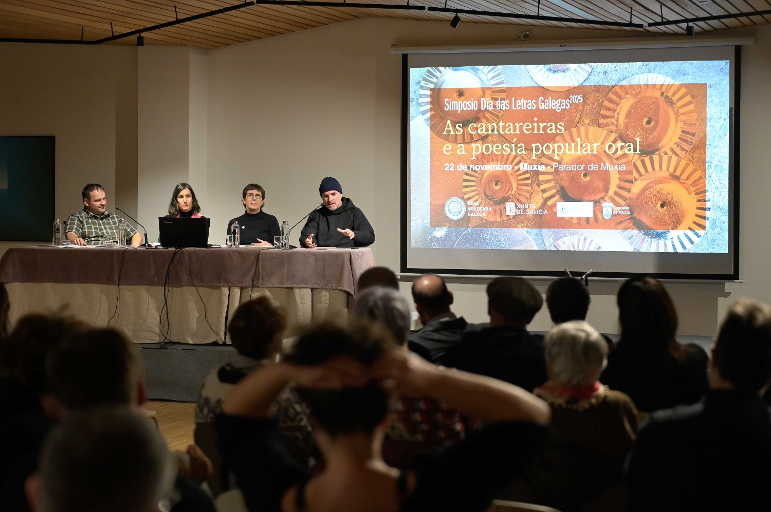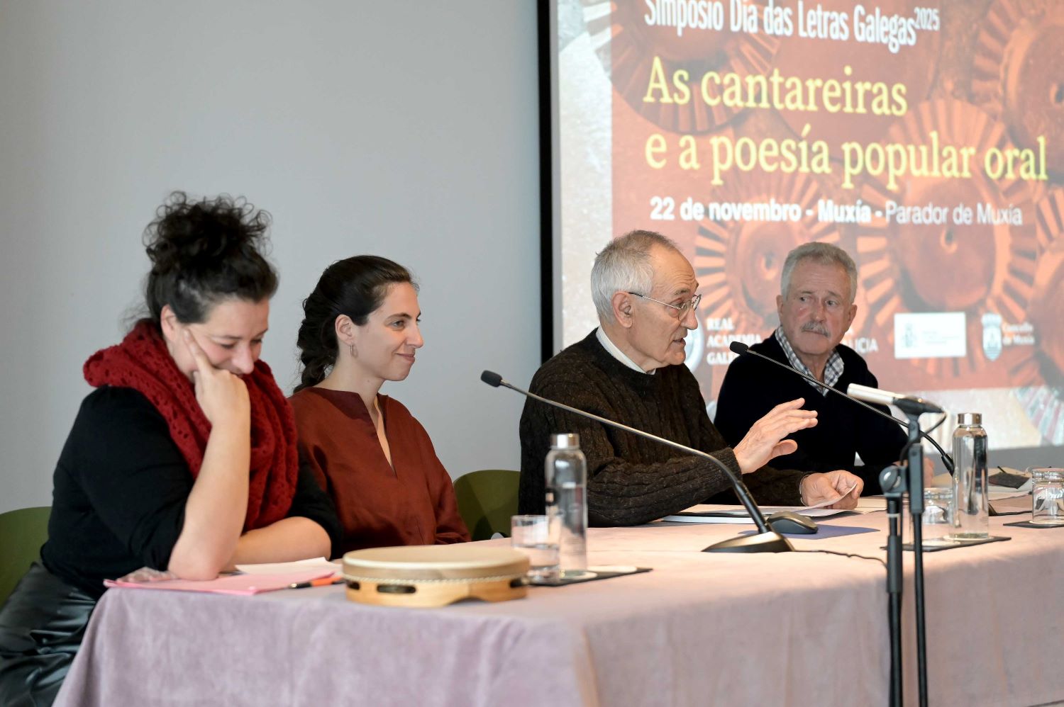 Henrique Monteagudo inaugurou o simposio xunto á académica María López-Sández; e o secretario xeral da Lingua, Valentín García, e o alcalde de Muxía, Javier Sar, que interviñeron en representación das institucións que colaboran na organización dun simposio que tamén conta co apoio económico do Ministerio de Ciencia, Innovación e Universidades. López-Sández falou en nome do equipo de organización do simposio do que tamén forman parte os académicos Víctor F. Freixanes e Antón Santamarina, coautor do Cancioneiro popular galego no que traballou canda a etnomusicóloga suíza Dorothé Schubarth, falecida en 2023.