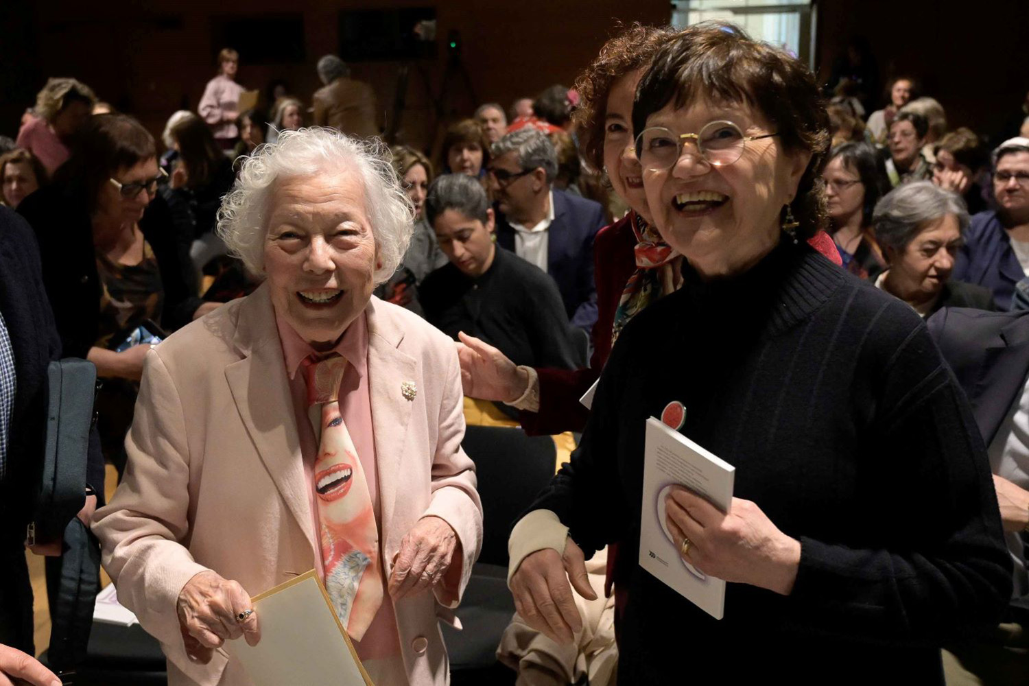 María Xosé Queizán momentos antes do inicio do acto coas académicas Marilar Aleixandre e Margarita Ledo.