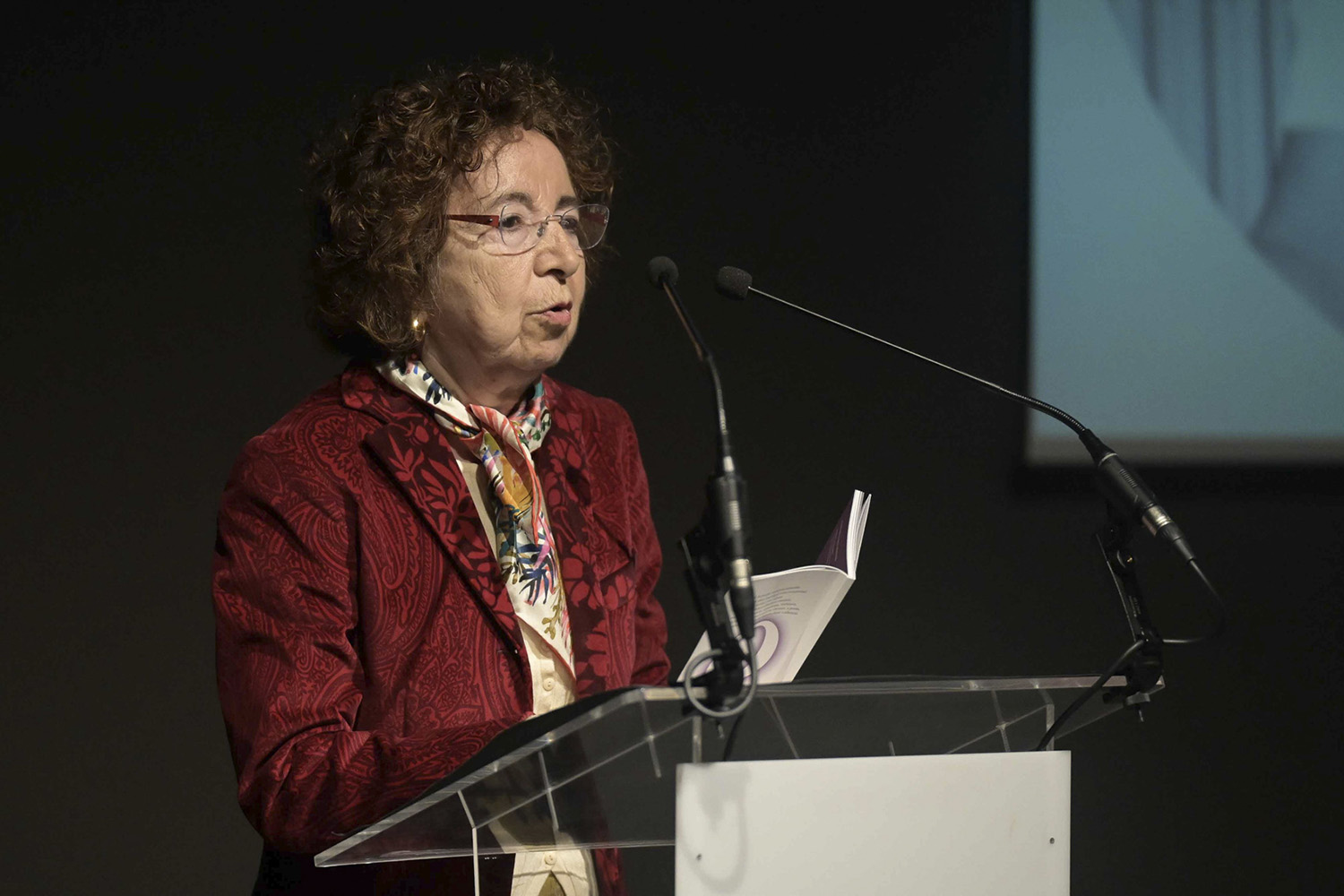 Marilar Aleixandre lendo “A escrita sen límites”, texto dedicado á homenaxeada.