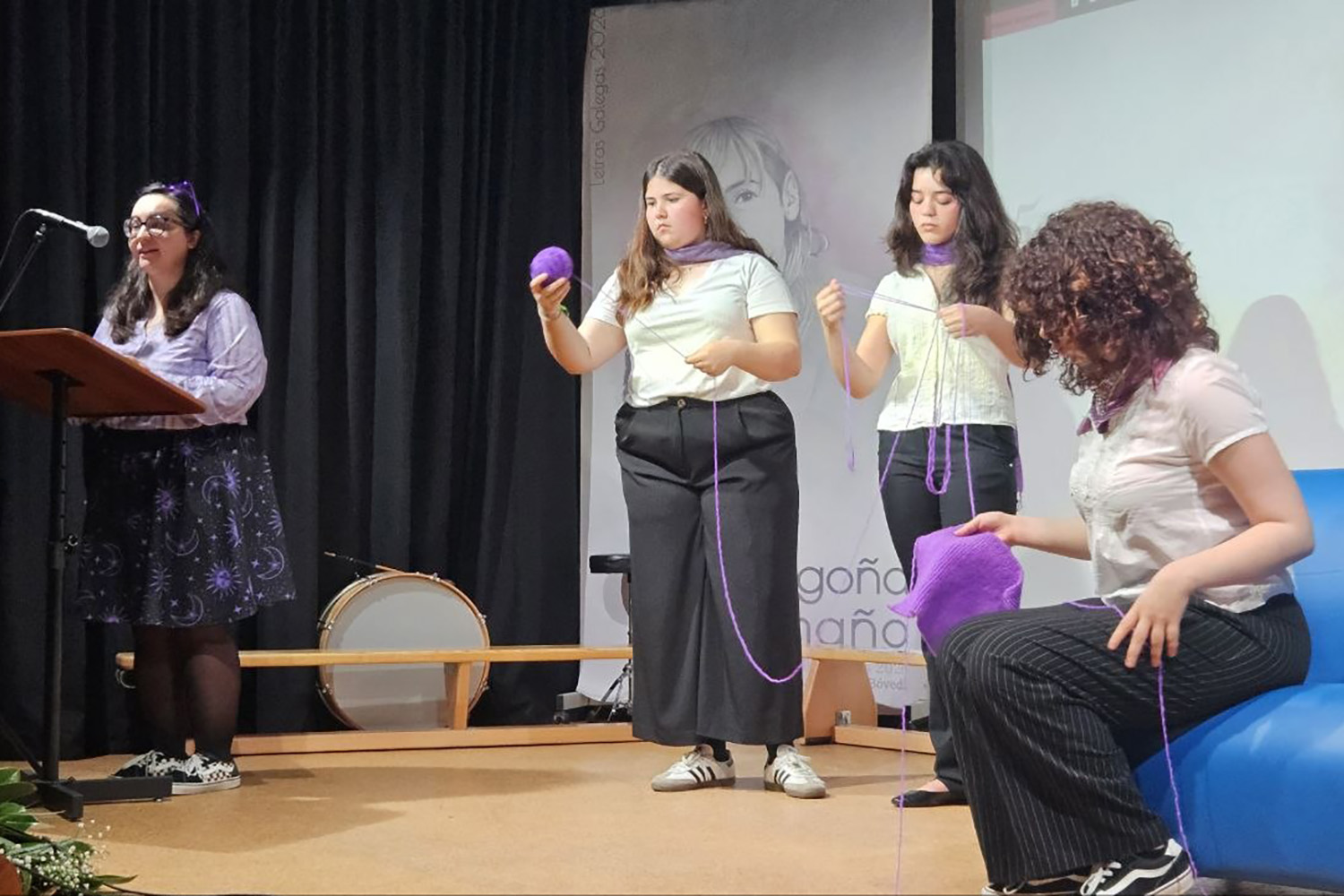 A Real Academia Galega escolleu o instituto onde estudou Begoña Caamaño como primeiro escenario para presentar o documental sobre a escritora e xornalista que produciu. O presidente Henrique Monteagudo; os directores de Begoña Caamaño: navegar no pracer do azul, Damián Varela e Alba López; e o académico Víctor F. Freixanes, editor de Caamaño e exprofesor do IES Alexandre Bóveda, interviñeron o pasado venres na homenaxe que o centro educativo vigués lle rendeu á protagonista do vindeiro Día das Letras 2026 para falar da película e da propia homenaxeada. A celebración contou tamén coa asistencia de voces amigas e estudosas da súa obra que van tecendo no relato audiovisual un retrato coral, e mais coas actrices e actores que interpretan na película os papeis das súas personaxes literarias.
