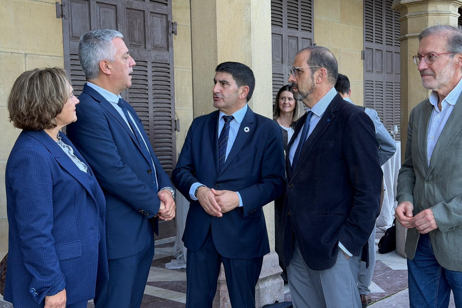 Henrique Monteagudo, á dereita, conversa co delegado do Goberno en Galicia, Pedro Blanco; o secretario xeral da Lingua, Valentín García; e a subdirectora xeral María Coutinho