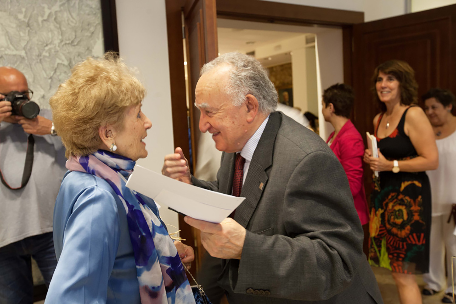 Coa académica Luz Pozo Garza na homenaxe á poeta polos seus 95 anos (ARAG)