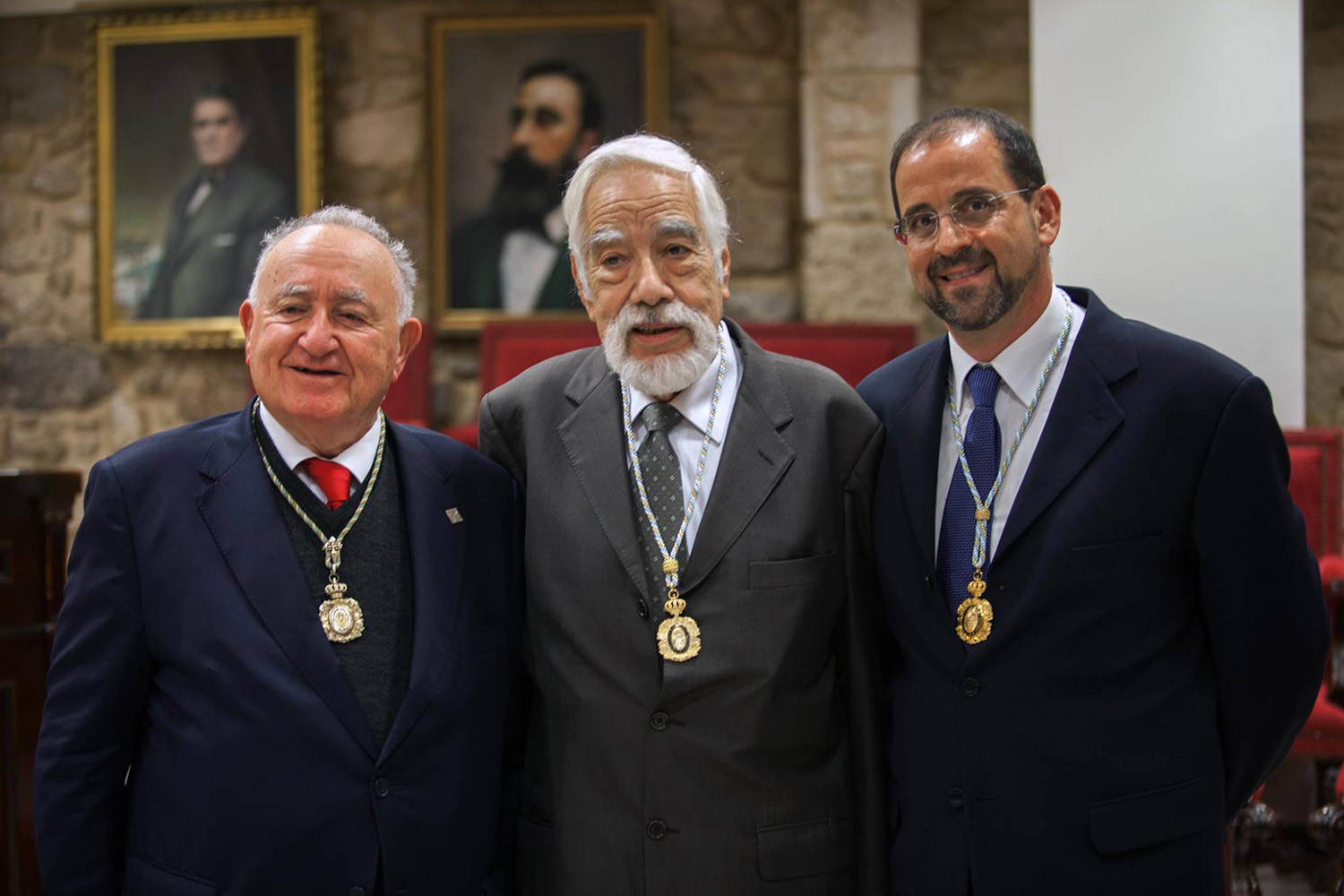 Alonso Montero con Basilio Losada, o día do seu ingreso na Academia como académico de honra, e Henrique Monteagudo (ARAG)