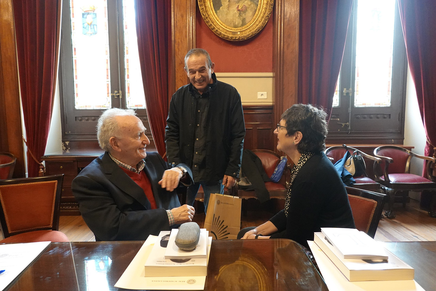 Alonso Montero conversa con Gonzalo Navaza e Ana Boullón nun dos últimos plenos da Academia (ARAG)