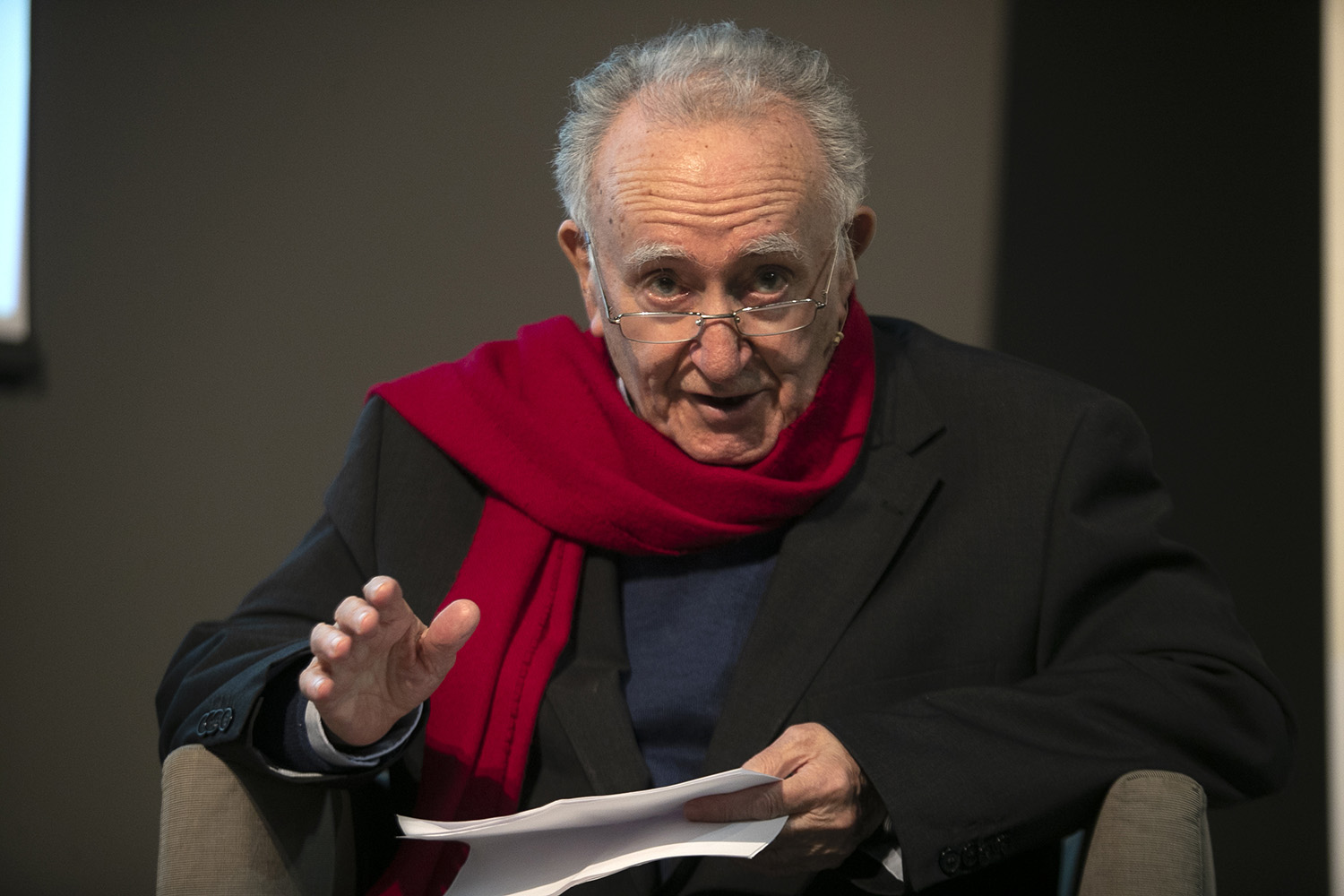 Xesús Alonso Montero tras ler o seu discurso no Día das Letras de Florencio Delgado Gurriarán, o 17 de maio de 2022 (ARAG)