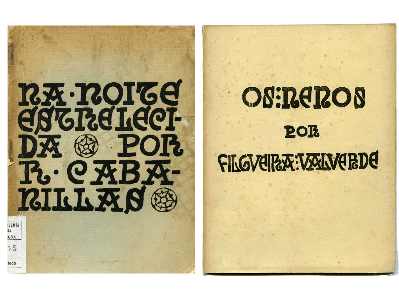 Unha das primeiras mostras desta tipografía encontrámola na novela O Diputado por Veiramar de Gonzalo López Abente. Esta obra obtivo o primeiro premio do Certame de Narrativa convocado por A Nosa Terra e foi publicada como primeiro volume da Bibrioteca Galeguista das Irmandades da Fala, unha colección que pretendía dar pulo a propostas renovadoras coa finalidade de promocionar a prosa en galego en particular e a cultura galega en xeral.