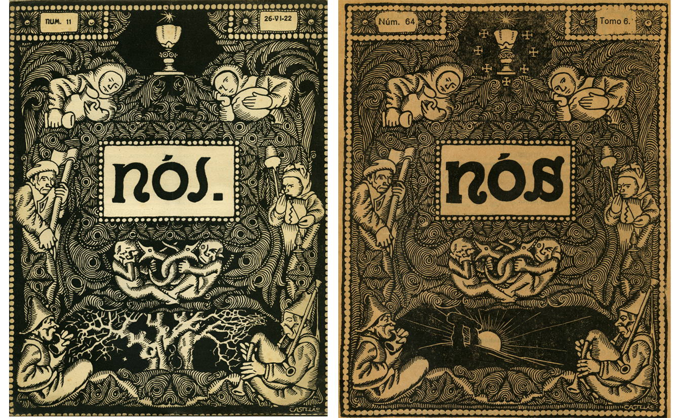 Esquerda: Nós (Ourense), n.º 11, 26/VI/1922. Dereita: Nós (Ourense), n.º 64, 15/IV/1929. Fonte: Real Academia Galega. Hemeroteca