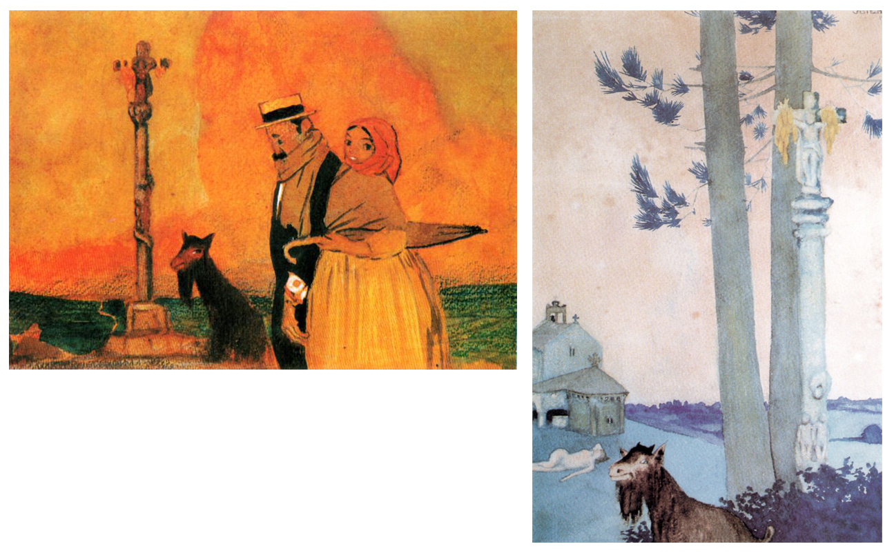 Algo menos coñecida é a realizada para o libro D’o Ermo de Antonio Noriega Varela (1920). Nela o protagonismo cae por vez primeira nun dos motivos máis recorrentes de Castelao, tanto da súa obra plástica coma do ensaio: o cruceiro.