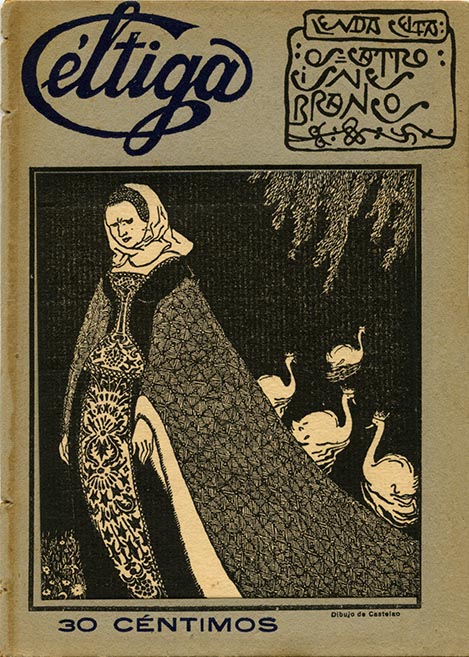Para facer esta cuberta Castelao inspirouse claramente nun dos mestres da gráfica modernista: o norteamericano Will Bradley (1868-1962). Trátase dun deseño curioso na súa traxectoria, xa que retoma un decorativismo idealista que deixara de ter presenza na súa arte tras publicar o dolorosamente realista Álbum Nós, ao mesmo tempo que iniciaba a súa militancia no nacionalismo galego. Supón, pois, unha paréntese, un pequeno descanso no medio das súas manifestacións de carácter máis reivindicativo, que traslada esa ilustración a tempos remotos e lendarios.
