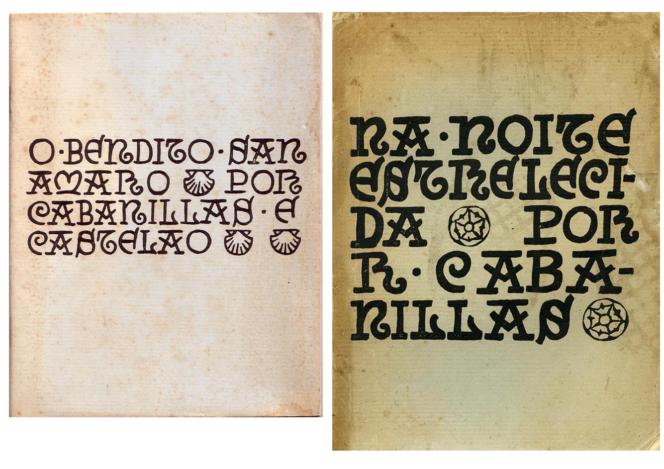 Esquerda, O bendito San Amaro / R. Cabanillas. [A Coruña]: Lar, 1925. Dereita: Na noite estrelecida / sagas de R. Cabanillas. [A Coruña]: Lar, 1926. Real Academia Galega. Biblioteca