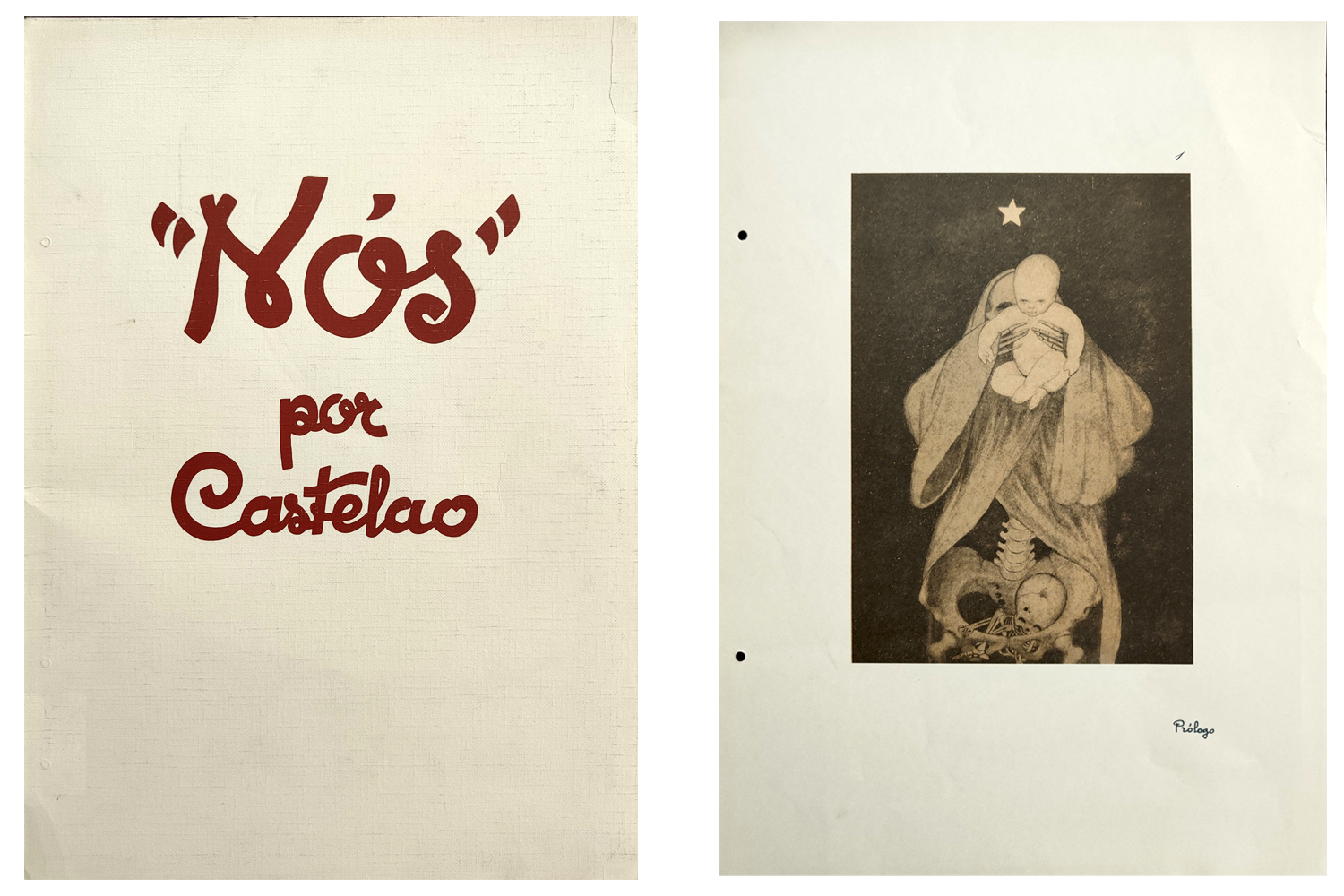 Composto por corenta e nove debuxos, cada un deles acompañado dun breve texto manuscrito, o álbum Nós foi publicado pola casa Hauser y Menet de Madrid no ano 1931. Así a todo, o público xa tivera a oportunidade de coñecer os seus contidos moito antes, pois os debuxos reunidos nesta obra —realizados entre 1916 e 1918— estiveran expostos en varias cidades galegas dende 1920. As imaxes que contén o álbum concibíronse como un vehículo para a denuncia de inxustizas sociais e están entre as máis coñecidas de Castelao.