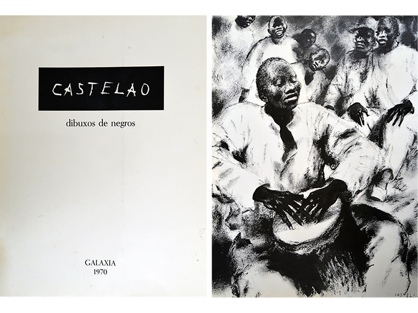 Os orixinais das doce láminas que compoñen o cartafol Dibuxos de Negros, publicado pola Editorial Galaxia en 1970, foron debuxados por el no ano 1939, durante unha estadía de tres meses en Cuba e posteriormente en Nova York, onde viviu un ano e medio. Pertencen, pois, á primeira época do exilio, antes de que fixase a súa residencia en Buenos Aires. En Cuba Castelao coñeceu a vida afro-antillana e nela inspirouse para realizar unha serie de debuxos nos cales amosaba os costumes da xentes de cor da illa. Posteriormente en Nova York tivo que vender moitas desas creacións para poder vivir en compañía da súa muller Virgina.