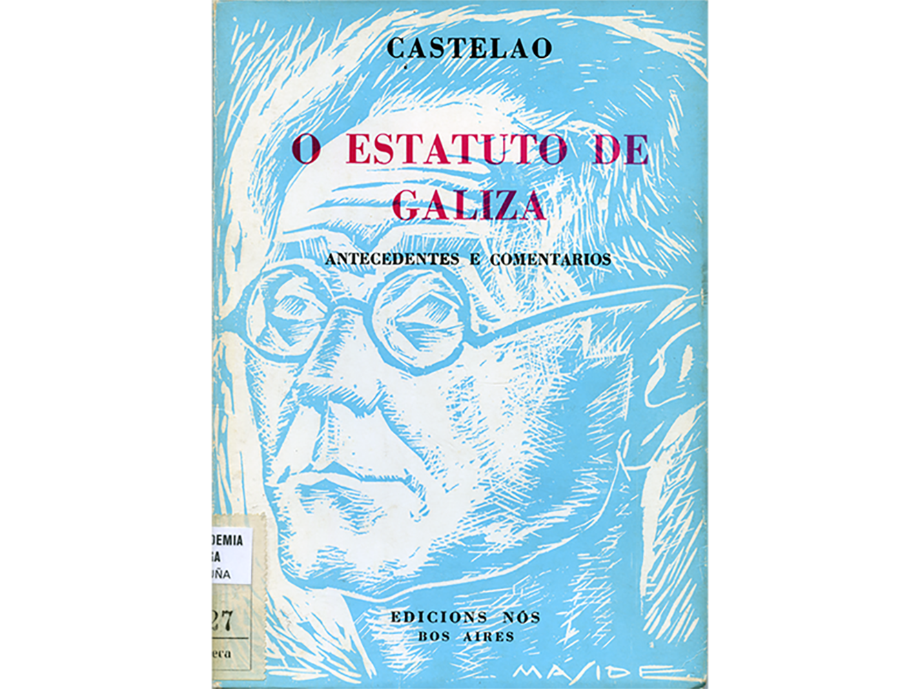O exemplar conservado na nosa Biblioteca ten unha dedicatoria de Castelao a Manuel Murguía, primeiro Presidente da Real Academia Galega.