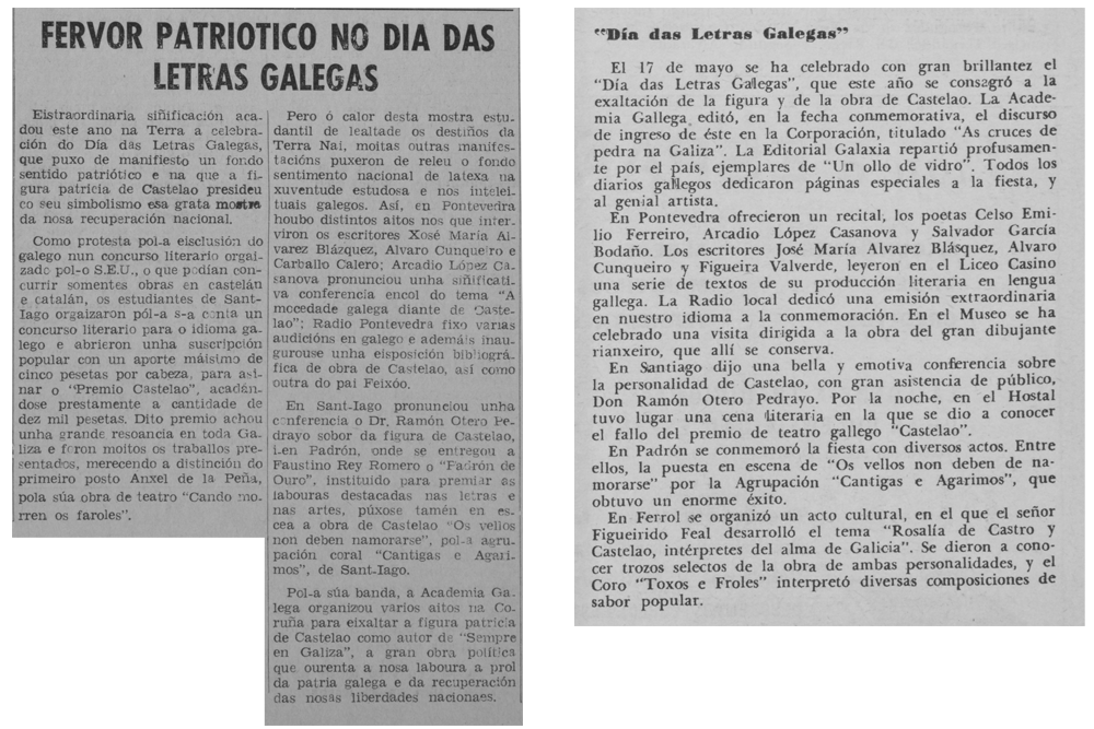 Fonte: La Voz de Galicia (A Coruña), n.º 26732, 17/V/1964 (esquerda); La Noche (Santiago de Compostela), n.º 13350, 19/V/1964 (dereita)
