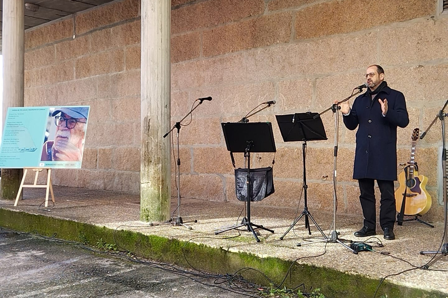 Henrique Monteagudo participou canda á alcaldesa de Cangas, Araceli Gestido, outros representantes institucionais e o público asistente nun acto cheo de poesía que concluíu coa descuberta dunha placa de pedra co rostro do autor na fachada da Casa da Cultura que leva o seu nome, e onde se conservan o seu arquivo e a súa biblioteca. Parte dos asistentes participaron portando remos, evocando a vinculación de Bernardino Graña co mar, creador dunha lírica moi persoal na que os ambientes mariñeiros nos que medrou deixaron unha fonda pegada.