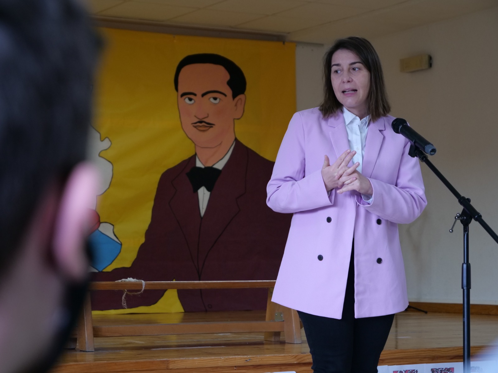 A académica Fina Casalderrey, directora do proxecto Primavera das Letras, conduce o acto