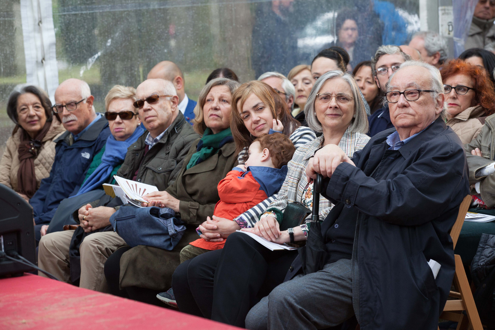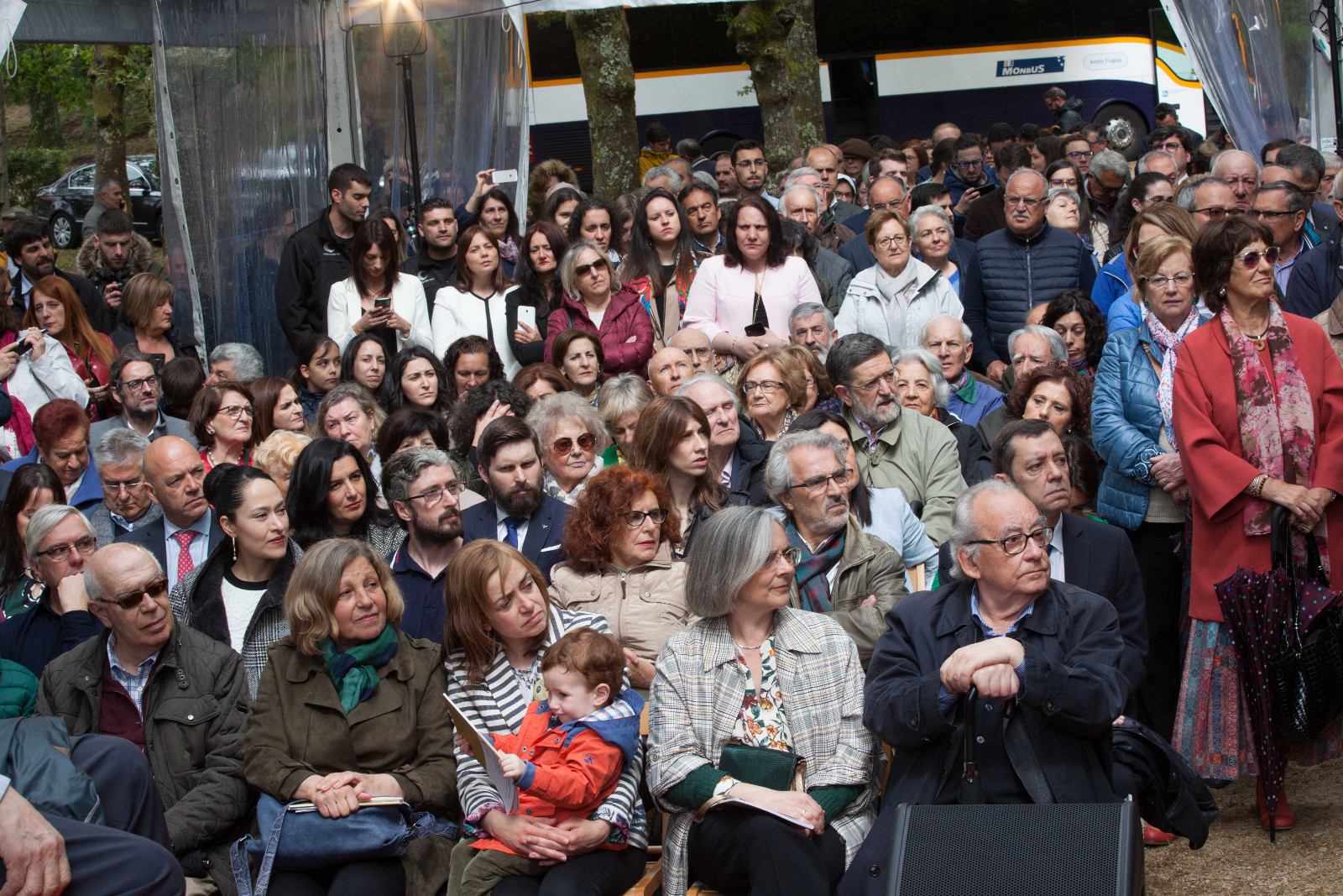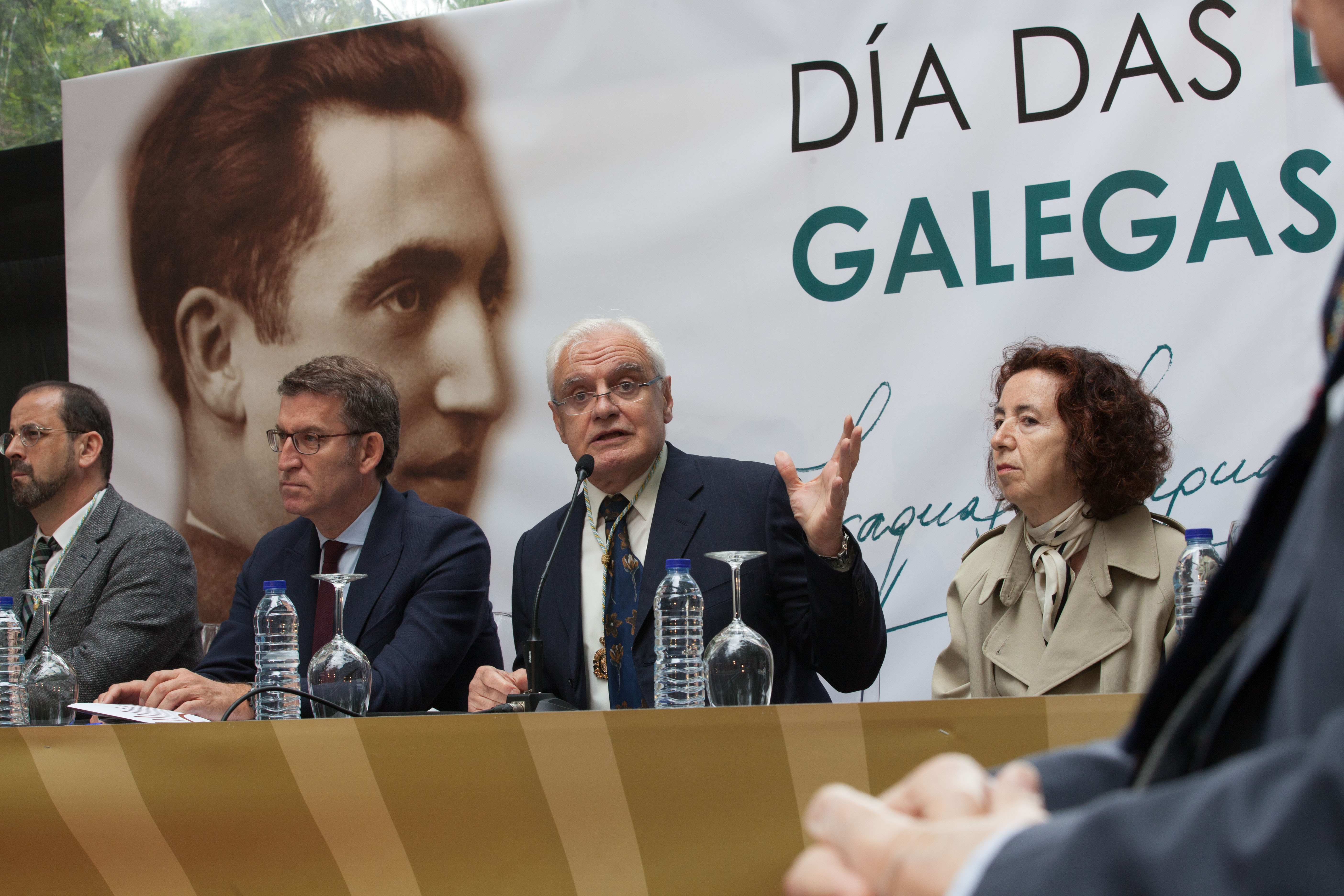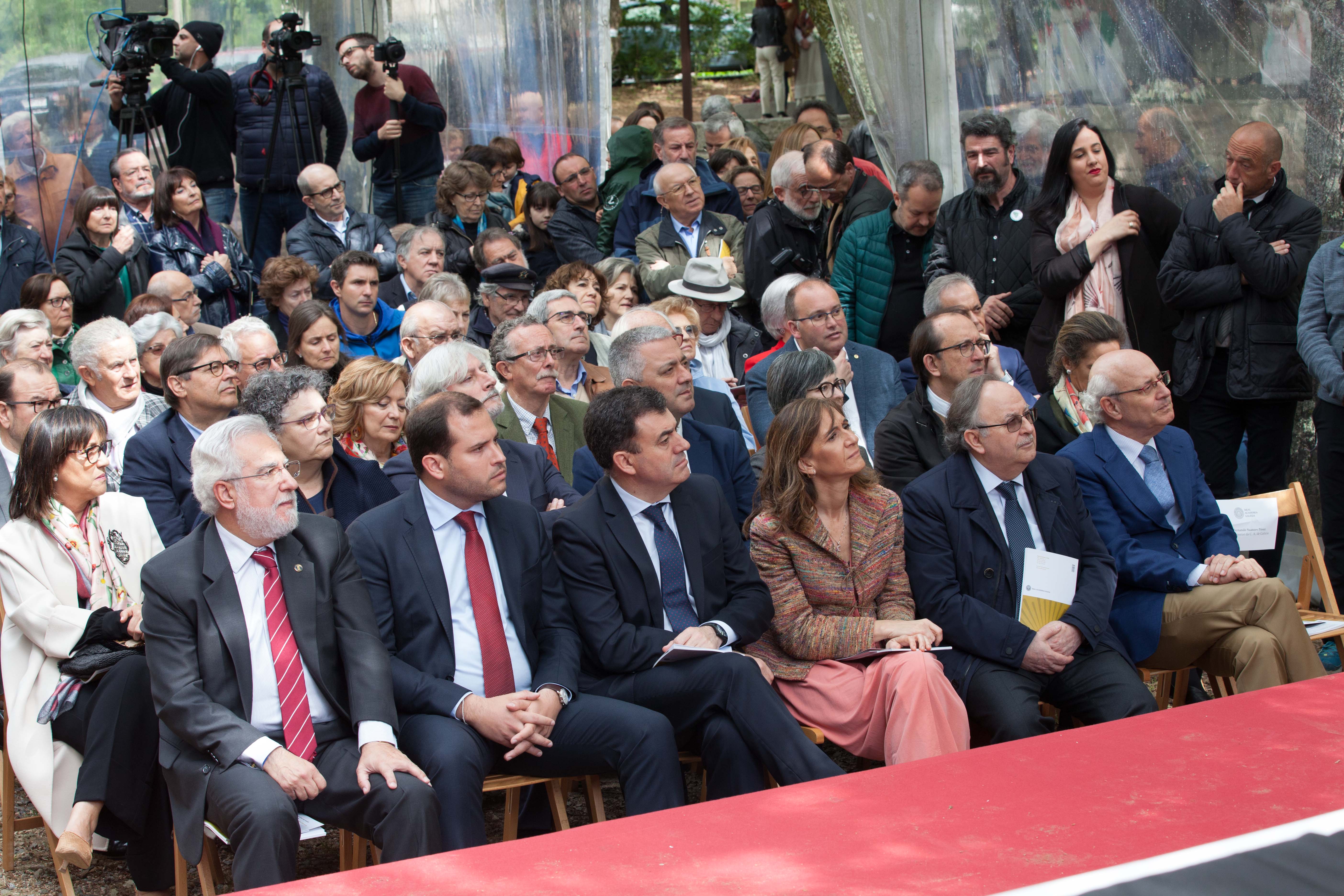 En primeira fila, pola esquerda, Miguel Santalices, presidente do Parlamento de Galicia; Jorge Cubela López, alcalde de Cerdedo-Cotobade; Román Rodríguez, conselleiro de Cultura; e Carmen Pomar, conselleira de Educación da Xunta de Galicia.