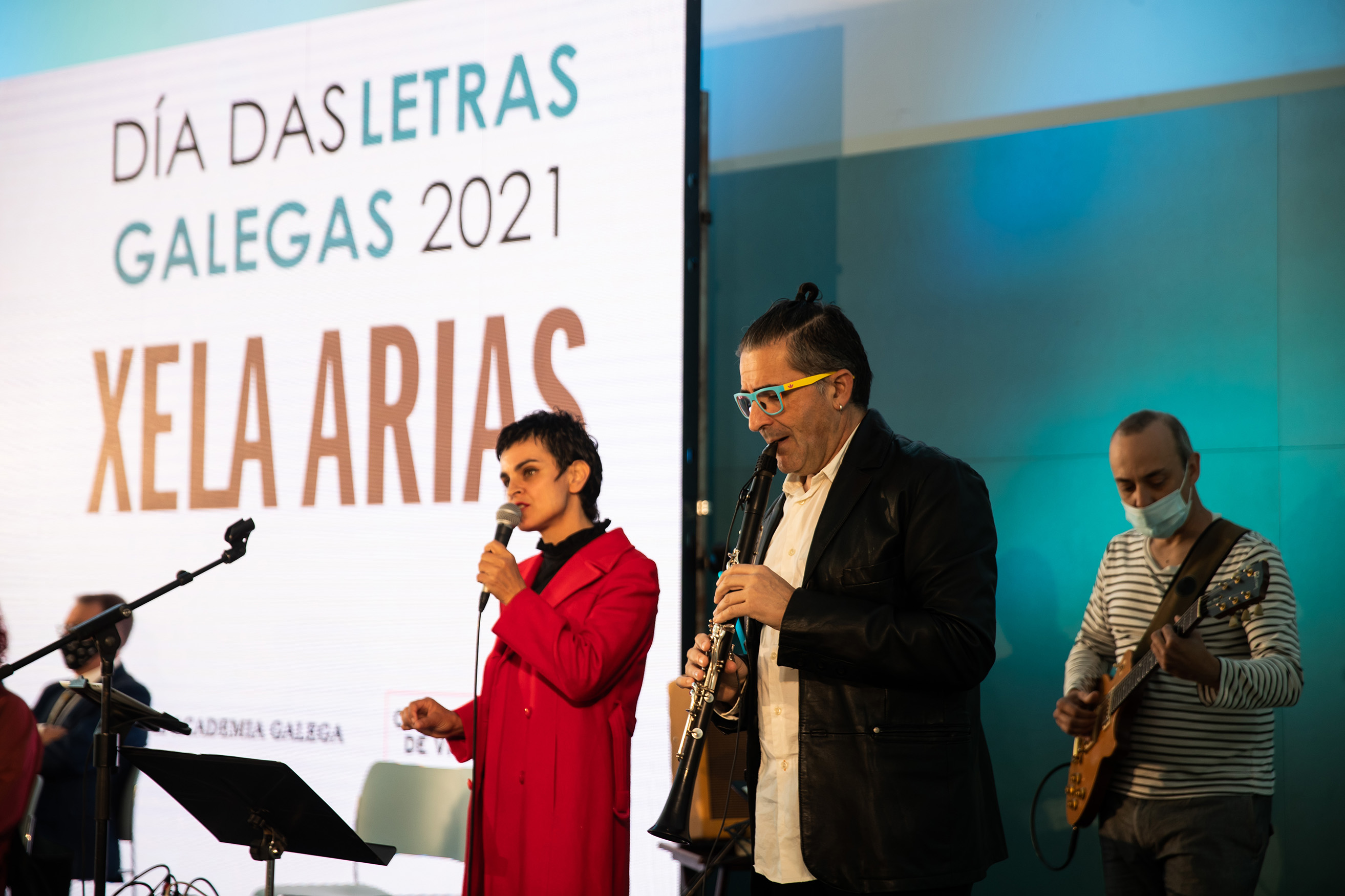 Fernando Abreu, Mónica de Nut e Pablo Carrera abriron o pleno do Día das Letras Galegas facendo dialogar os versos de Xela Arias na súa propia voz coa música. O acto desenvolveuse no Auditorio Mar de Vigo.