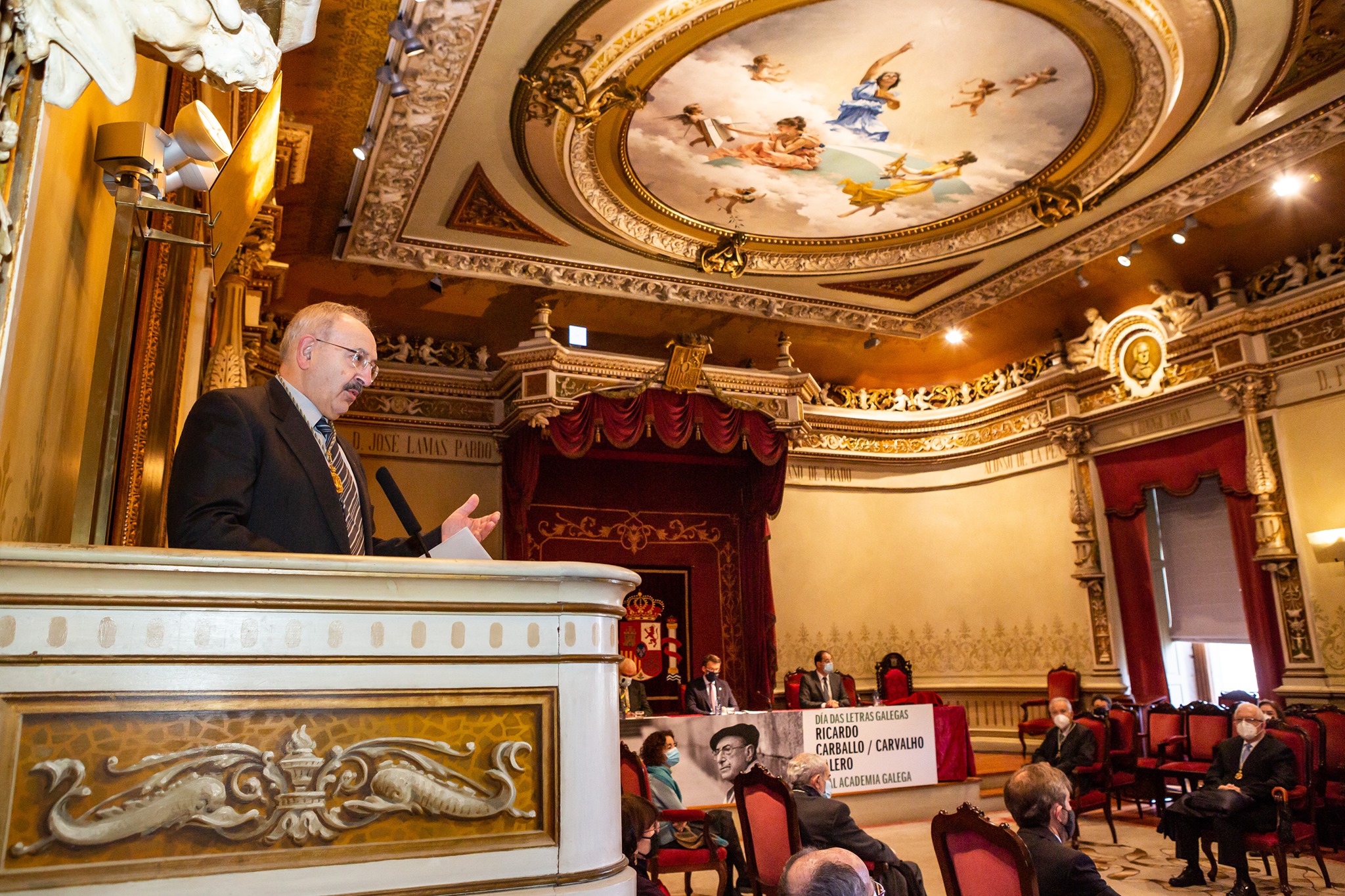 A Real Academia Galega celebrou esta mañá o pleno extraordinario do Día das Letras Galegas dedicado ao filólogo e escritor Ricardo Carvalho Calero (Ferrol, 1910 – Santiago de Compostela, 1990) no paraninfo da Universidade de Santiago de Compostela.
