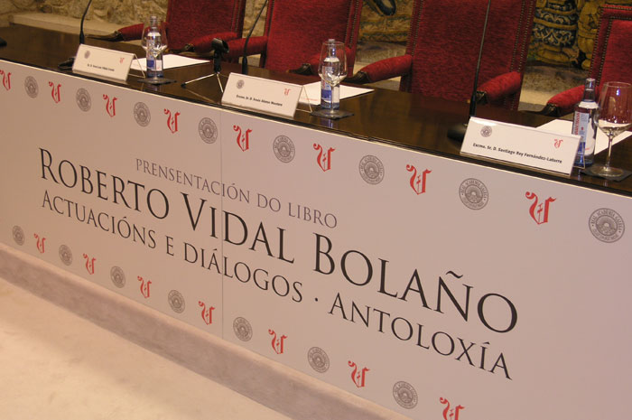 O 15 de maio de 2013 tiña lugar, no salón de actos da Academia, a presentación do libro "Roberto Vidal Bolaño. Acoutacións e diálogos. Antoloxia", publicado por La Voz de Galicia