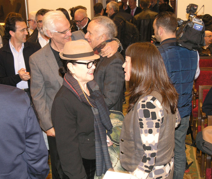 En primeiro termo, a académica Margarita Ledo falando coa actriz Mónica Camaño.