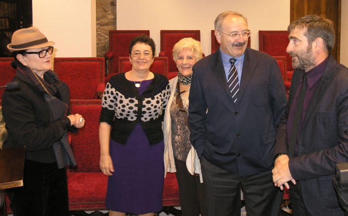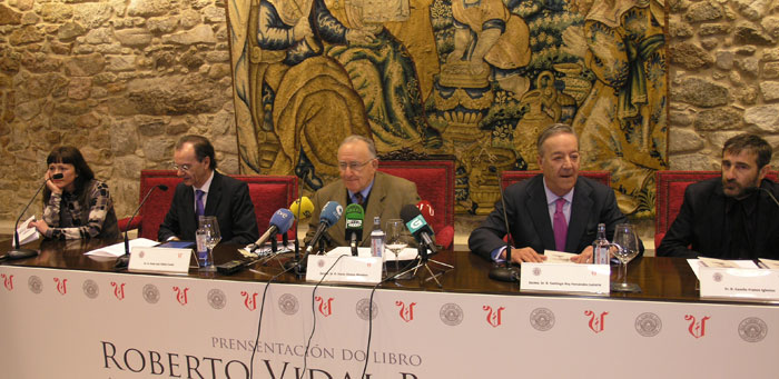 Mónica Camño, Xosé Luís Vilela, Alonso Montero, Rey Fernández-Latorre e Camilo Franco durante a presentación do libro editado por este último.