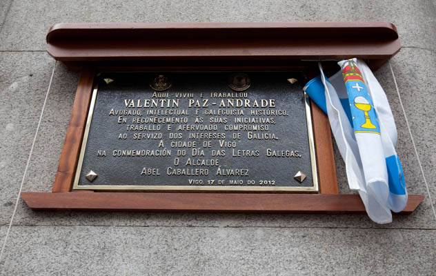 Imaxe da placa dedicada a Valentín Paz Andrade.