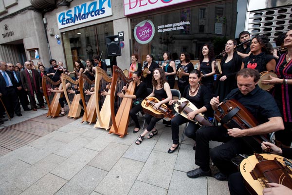 A orquesta folk Sondeseu interpretando unha peza na rúa despois do acto.