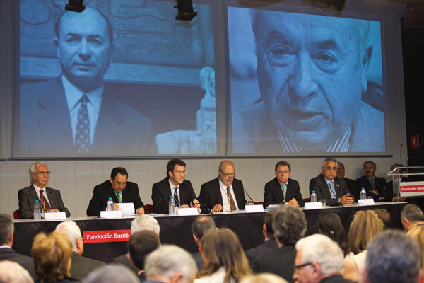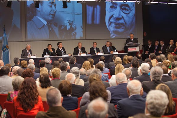 Mesa cabeceira do acto. De esquerda a dereita: Euloxio Rodríguez Ruibal, Xosé Luís Axeitos Agrelo, Alberto Núñez Feijoo, Xosé Luís Méndez Ferrín, Manuel González González e Francisco Fernández Rei.