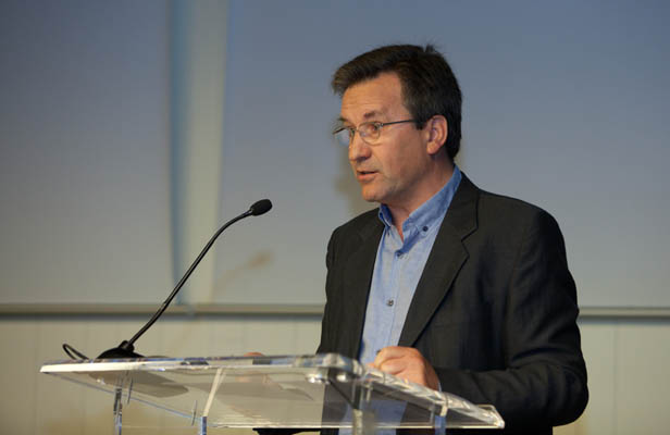 O académico de número Xosé Ramón Barreiro Fernández dirixíndose ao público.