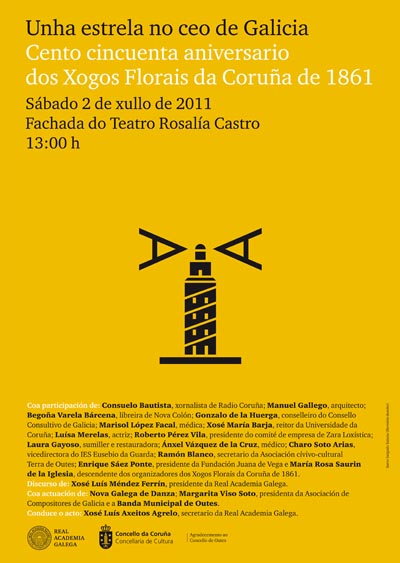 O 2 de xullo de 2011 tivo lugar na Coruña un acto en lembranza do 150 aniversario dos Xogos Florais celebrados nesta cidade en 1861 que supuxeron o inicio do Rexurdimento.