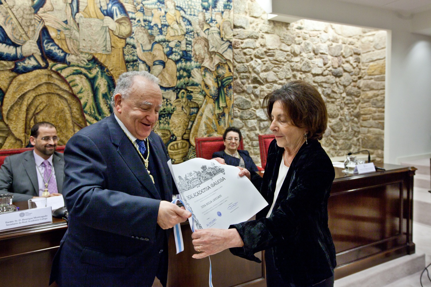 O 8 de marzo de 2014 tivo lugar, no salón de actos da Academia, o acto de recepción como académica honoraria de Giulia Lanciani. A encargada de responder o seu discurso de ingreso en nome da Academia foi Rosario Álvarez.
