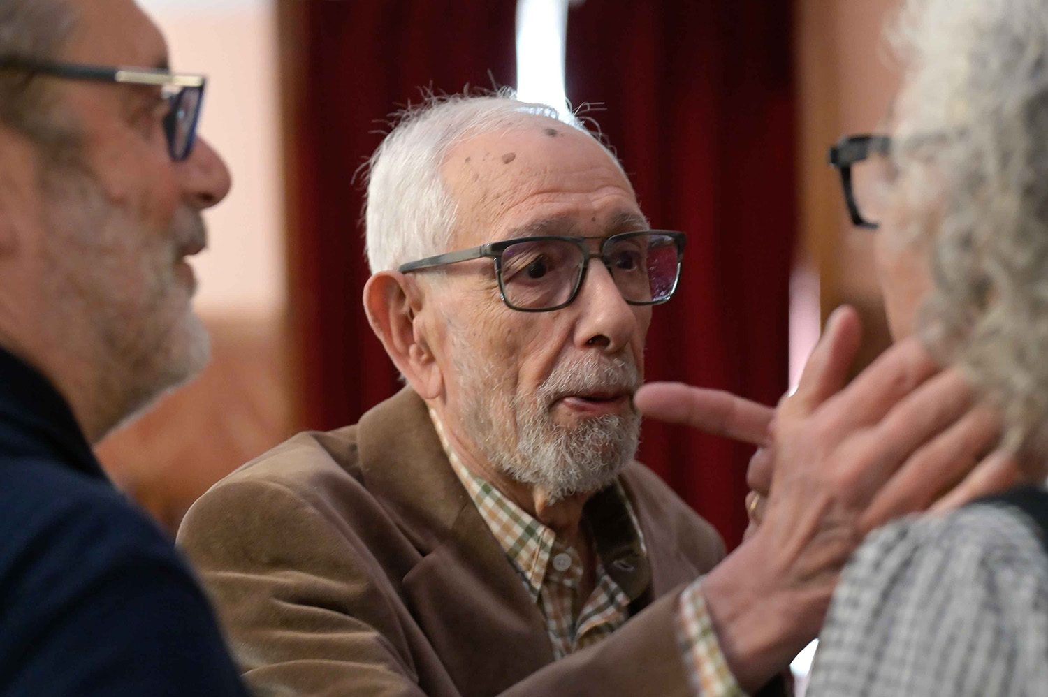 O outro tema desta última intervención foi á propia obra do homenaxeado no seu conxunto. Aínda que o Lamote é o seu personaxe máis coñecido, Paco Martín é autor doutros títulos, o último deles Mr. Smith e a festa murada (2023), onde Tobar figura na dedicatoria. O primeiro, Muxicas no espello, saíu do prelo medio século atrás, no ano 1971, e logo aparecería No cadeixo (1976), “un libro que el valora moitísimo”, asegura o tamén editor. E agora cun ceo de lama (1981), Dende a muralla (1990) ou Tres historias para ler á noite (1992) son outros dos seus libros enmarcados na narrativa para adultos, mentres que baixo a etiqueta de literatura infantil e xuvenil que el refuga conta con máis dunha quincena de volumes, entre eles Das novas cousas de Ramón Lamote (2008).