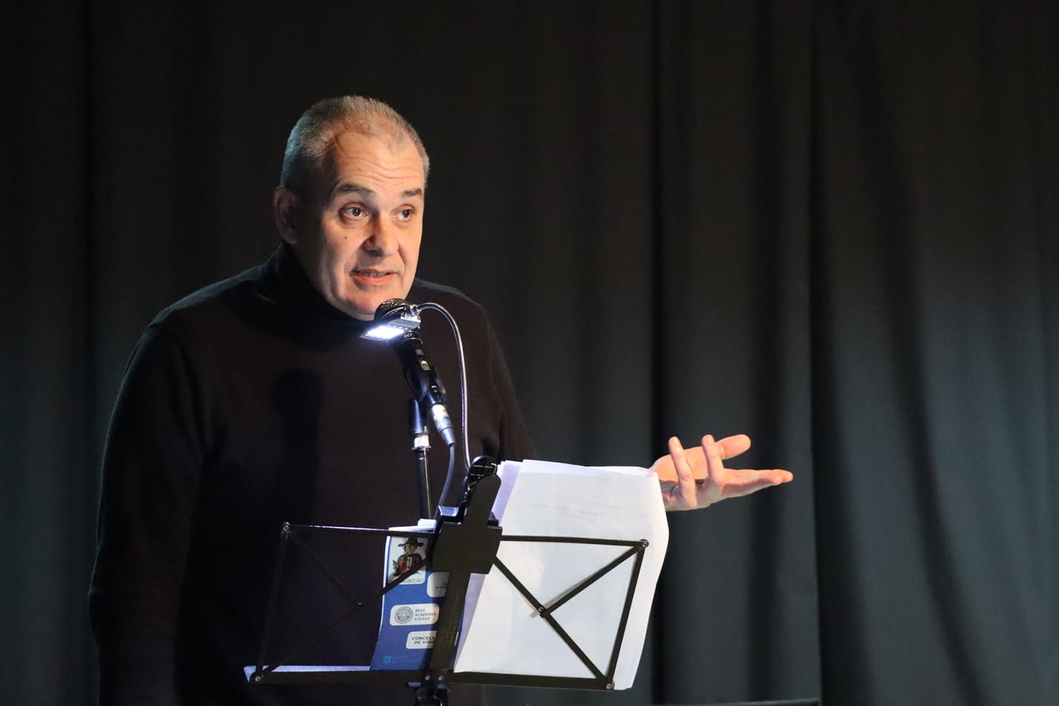 Ramón Nicolás centrou a súa intervención no vínculo de Begoña Caamaño co barrio, o fío condutor d’A nena que perdeu un zapato na lama. Begoña Caamaño no Calvario vigués, 1964 – 1976, a biografía da súa autoría que acaba de saír do prelo da man da Editorial Galaxia. Nestas páxinas o académico correspondente recrea, entre outros episodios, como a pequena Begoña xogaba na leira do Penelas, o patio do recreo da academia que foi o seu primeiro colexio. Naquela escola Caamaño tivo como profesora de francés a escritora María Xosé Queizán, quen lle aprendeu “Le petit cheval”. Coa interpretación desta canción de George Brassens a cargo de alumnado de música de Josefa Fernández arrincou o acto, no que soou ademais a música de Su Garrido Pombo, veciña do Calvario.