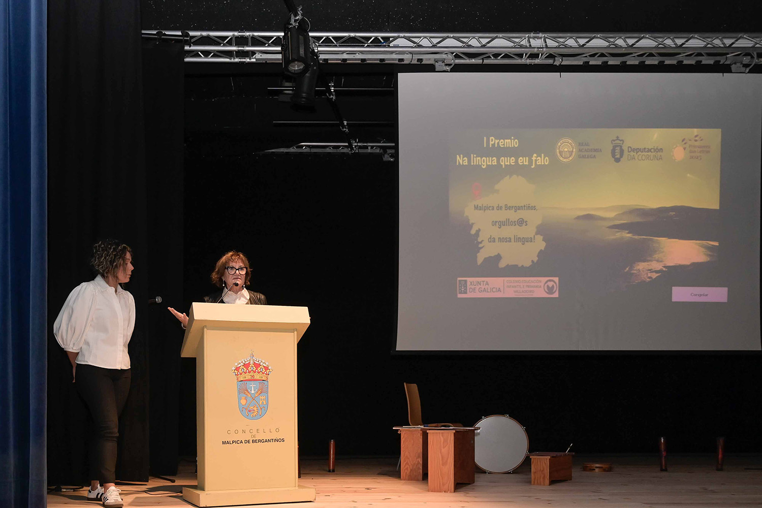 “Educar en galego é unha expresión do noso compromiso coa cultura e coa sociedade que nos arrodean. É educar desde a raíz, transmitir valores e formar persoas conscientes da súa orixe e da súa capacidade para transformar o mundo desde o que son”, comparte a directora do CEIP Milladoiro, Ana Seoane Cives, que recolleu o galardón de mans do presidente. “En Malpica o galego é máis ca unha lingua: é un reflexo da nosa maneira de sentir, de vivir e de relacionarnos co mar, coa terra e coa xente. A lingua galega permítenos ademais conectar a realidade local coa global, comprender o noso lugar no mundo e participar del con voz propia. A través dela promovemos o pensamento crítico, o diálogo e o gozo compartido da cultura”, abunda a directora.