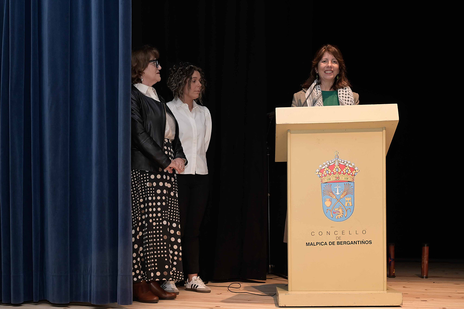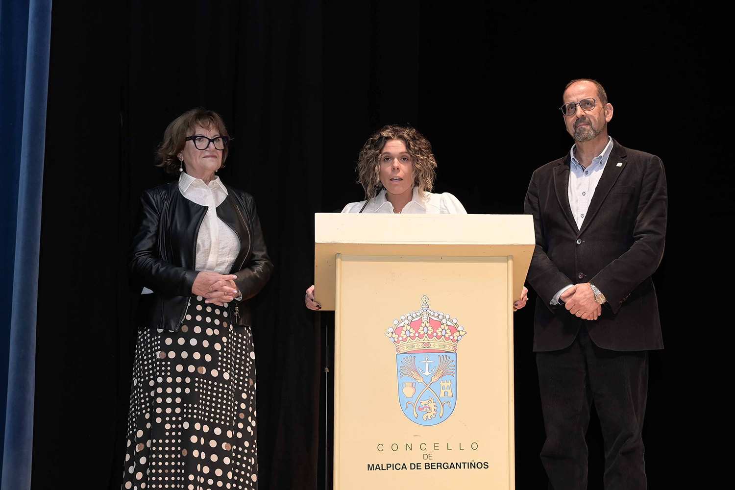 Na quenda de intervención institucionais, tamén interviñeron a deputada de Igualdade, Lingua e Dereitos Civís da Deputación da Coruña, Soledad Agra, e o alcalde de Malpica de Bergantiños, Eduardo Parga Veiga. Tras a entrega do galardón, a xornada festiva continuou cunha visita ao centro, onde se serviron uns petiscos preparados polo alumnado na aula de cociña.