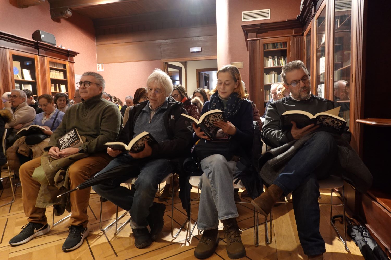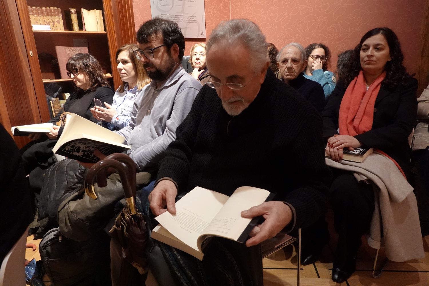 Público folleando o libro momentos antes do inicio da presentación.