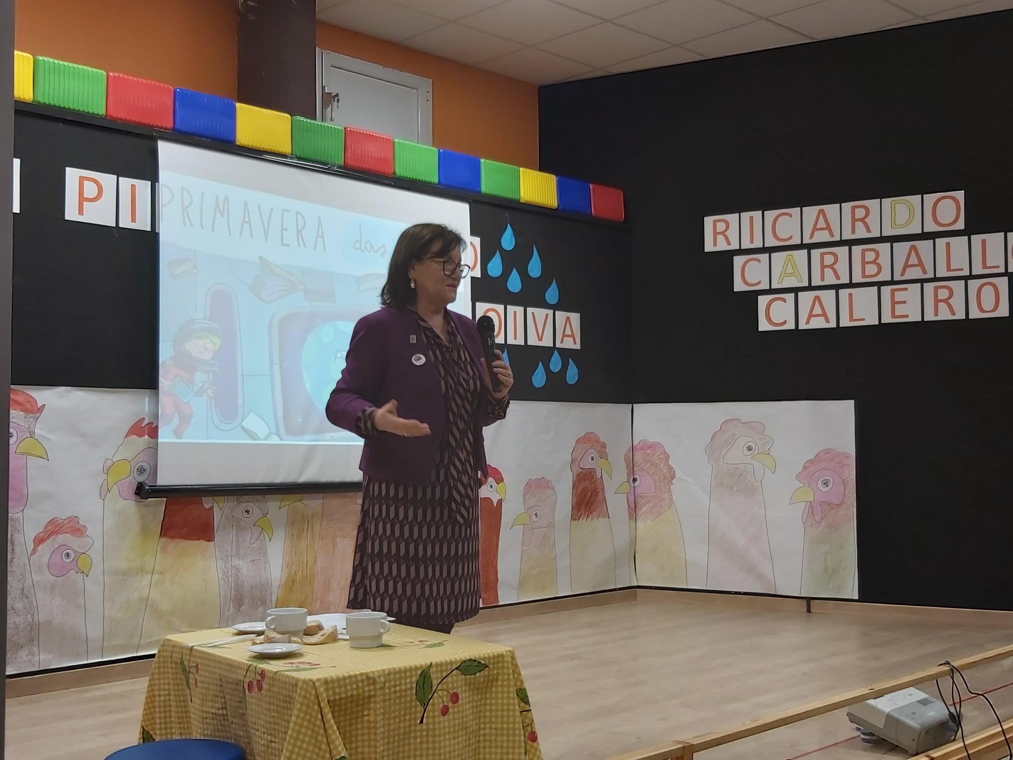 A académica Fina Casalderrey presentou o proxecto web #PrimaveradasLetras. "A Real Academia quere manter un vínculo duradeiro con vós porque sabe que a verdadeira primavera para a nosa lingua e a nosa cultura está na xente nova", díxolles aos nenos e nenas.