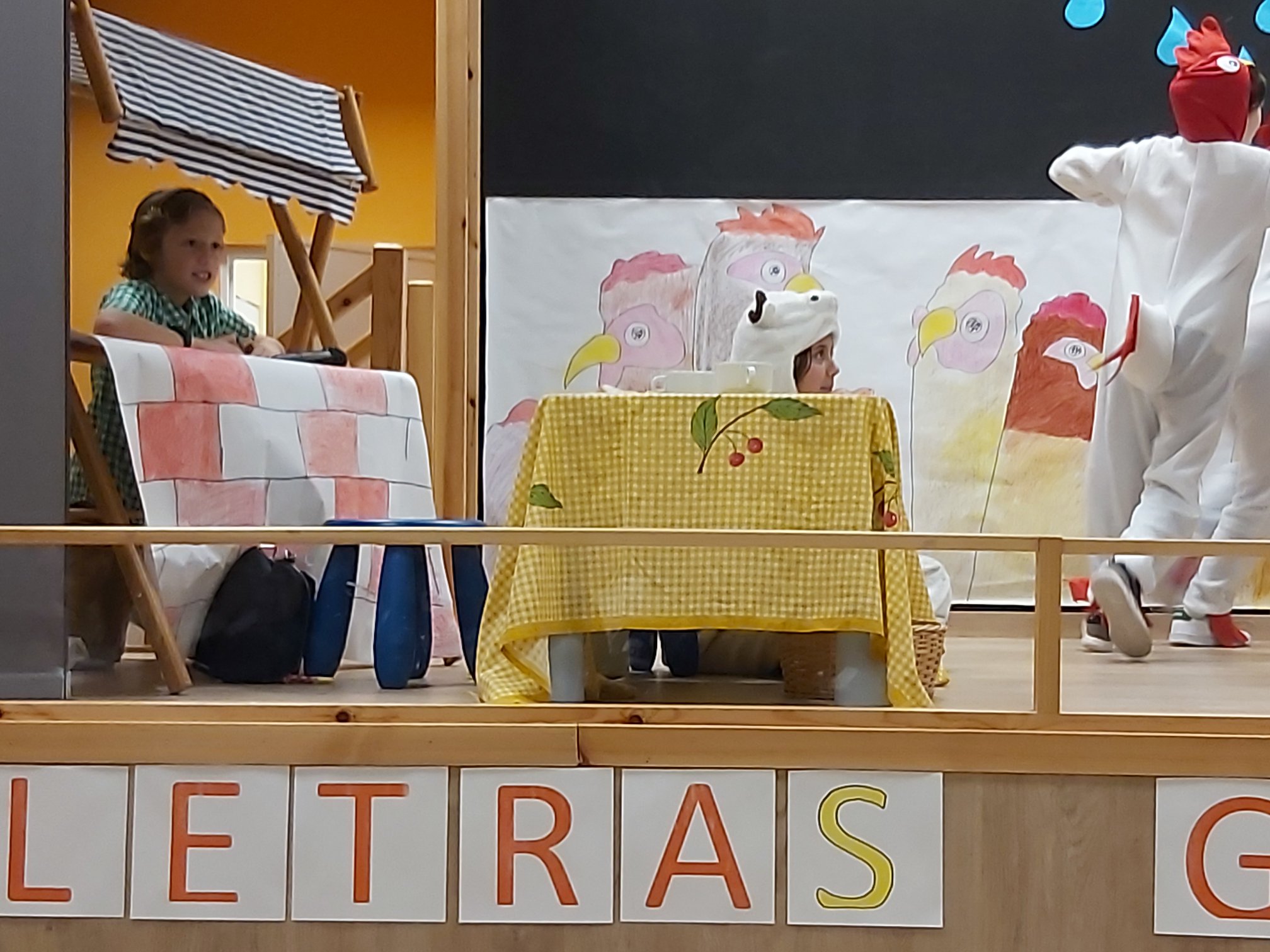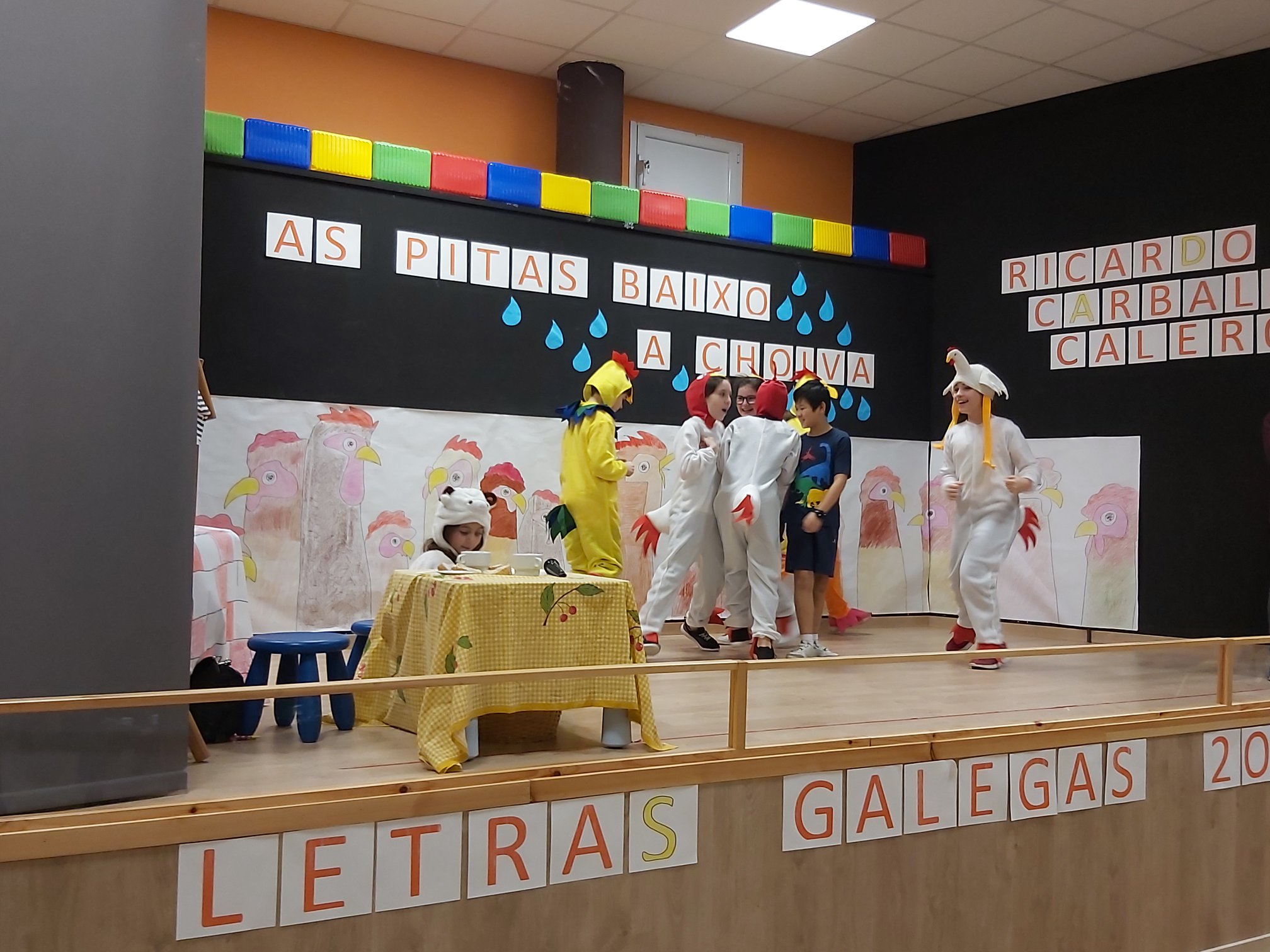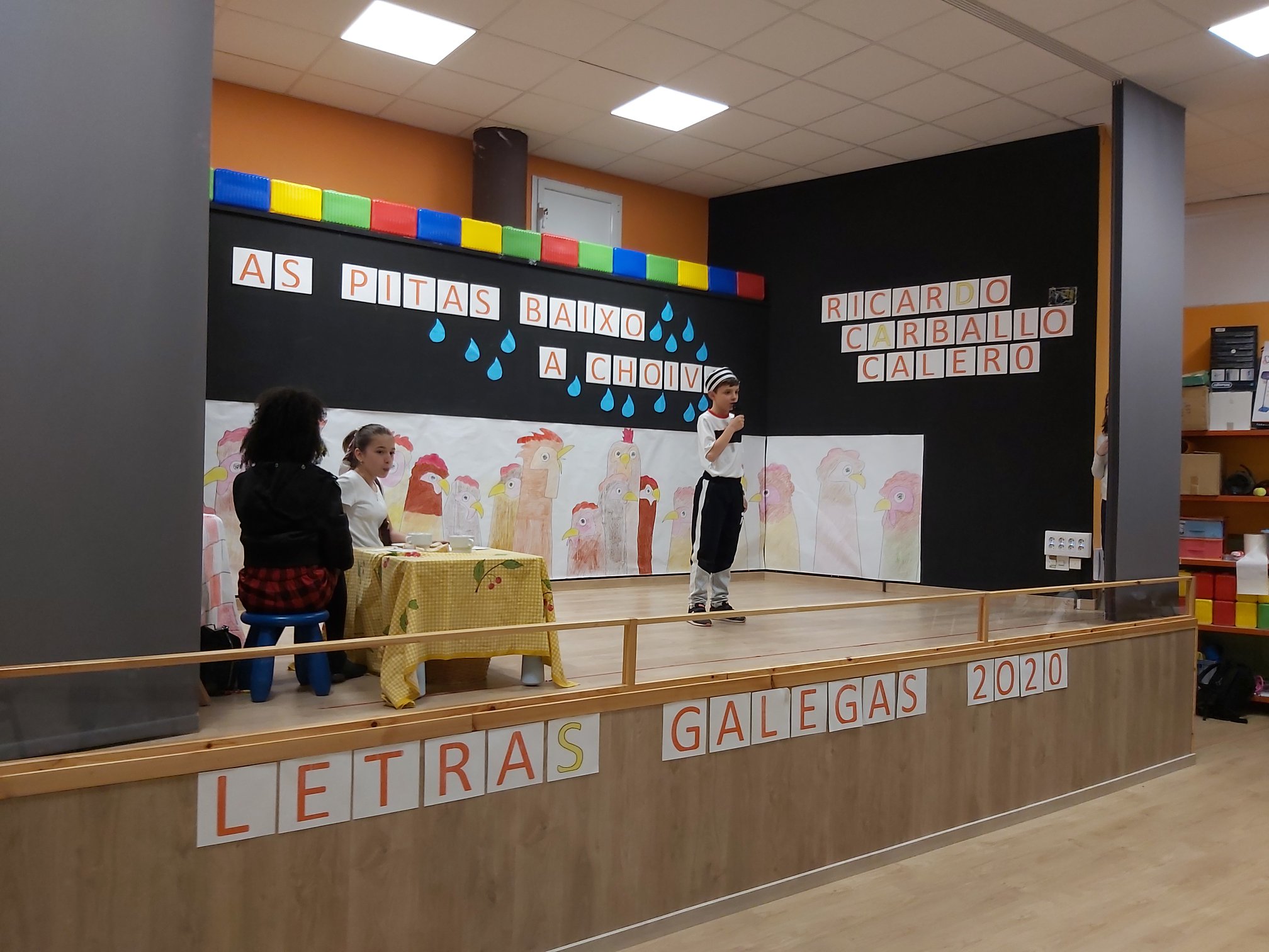 Un momento da representación do conto de Ricardo Carballo Calero "As pitas baixo a choiva".
