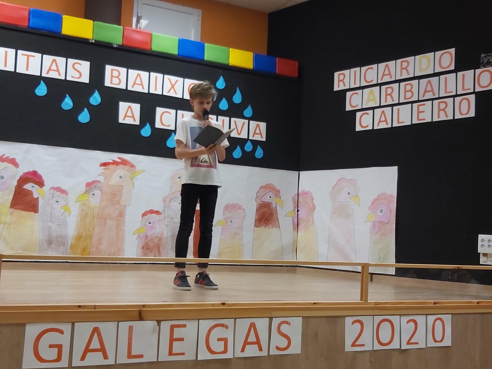 Un alumno le un fragmento dunha obra de Carballo Calero.