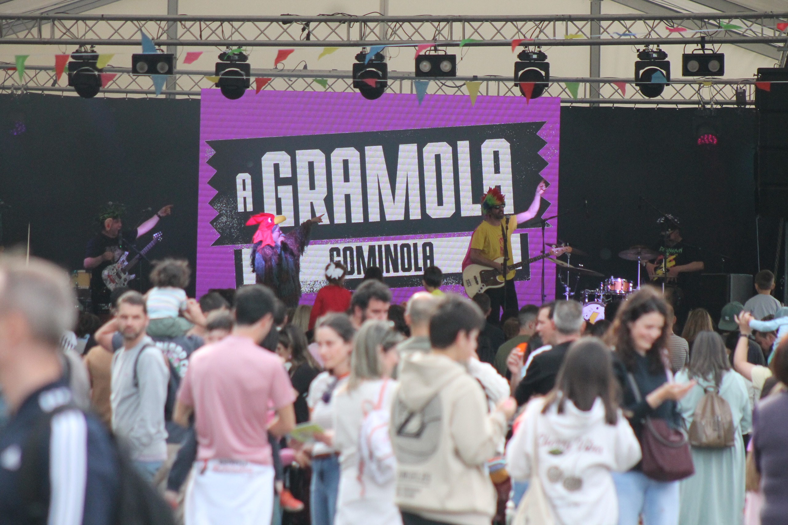 A explanada do pavillón de deportes de Bertamiráns acolleu o venres o festival de música infantil que lle puxo o ramo á cuarta edición do programa de investigación e acción Modo galego, actívao! A cita reuniu centos de rapaces e rapazas coas súas familias para cantar e bailar co grupo de música tradicional amesán As Mainas e mais con dúas das bandas máis potentes do panorama da música infantil en galego: A Gramola Gominola e Uxía Lambona e a Banda Molona.