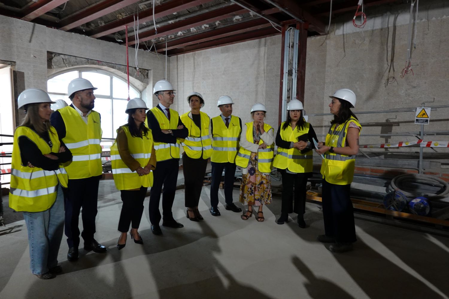 A secretaria xeral de Coordinación Territorial, Miryam Álvarez Páez; o delegado do Goberno en Galicia, Pedro Blanco Lobeiras; e a alcaldesa da Coruña, Inés Rey García, participaron tamén na visita ao histórico edificio, no treito final dos traballos que se realizan baixo a dirección do arquitecto tudense Gonzalo Moure, gañador co concurso licitado polo daquela Ministerio de Fomento.