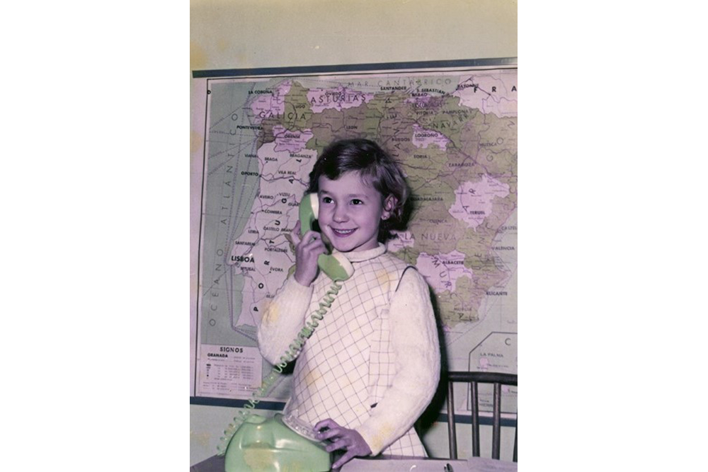 Begoña Caamaño de nena, sentada á dereita, cooa súa familia e amizades.
