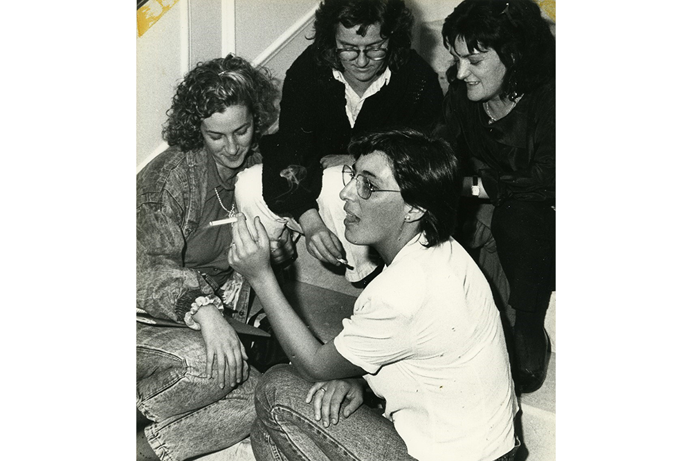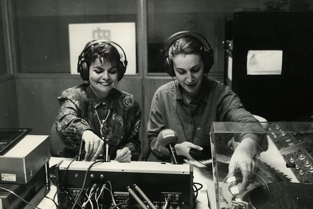 A autora nos anos 80 cunha compañeira de Radio Popular.
