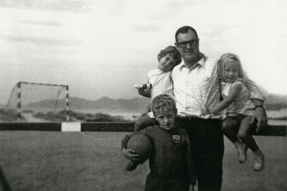 Begoña Caamaño, no colo do pai á esquerda da imaxe, coa súa irmá Beatriz e o seu irmán Roberto.