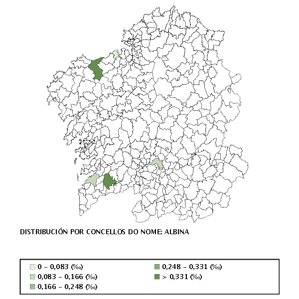 Do latín albinus 'abrancazado' (derivado de albus 'branco'). Orixinariamente debeu de ser un apelido alusivo á color clara da pel e do pelo; co tempo chegou a ser nome propio.