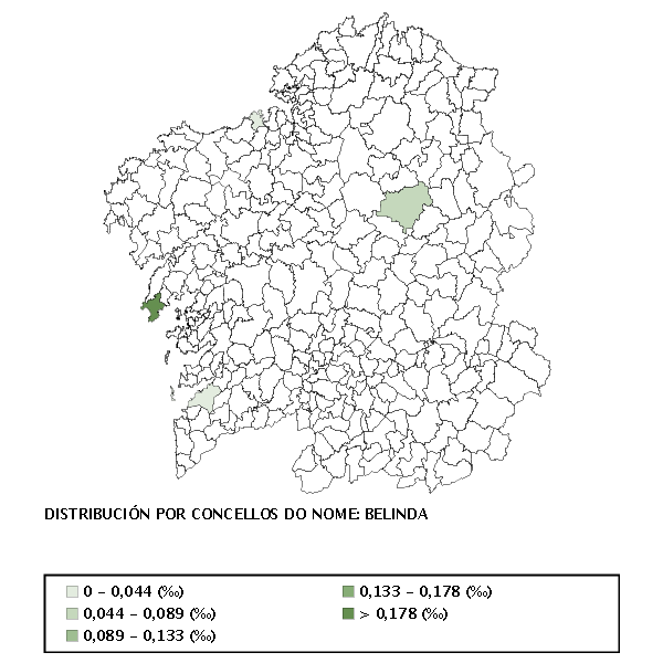 Nome de introdución recente e orixe incerta. O primeiro elemento foi relacionado co latín bella 'fermosa', e o segundo co xermánico lindi ‘doce’. Tamén pode ser unha variante de Benilde.