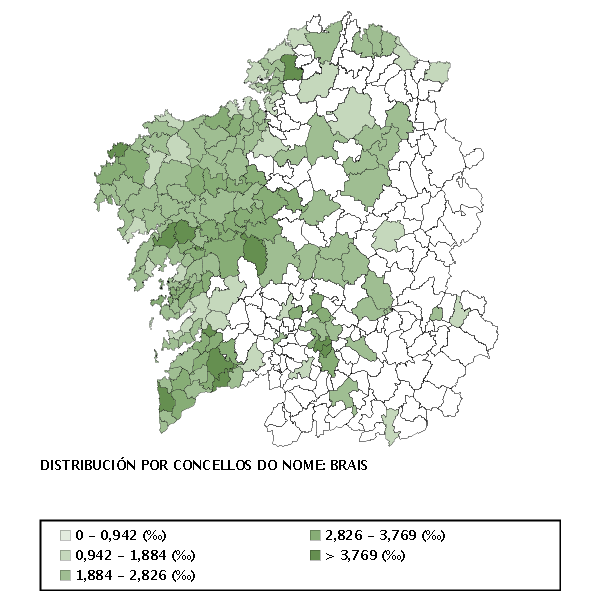 Só se mostran os datos con máis de cinco ocorrencias por concello.