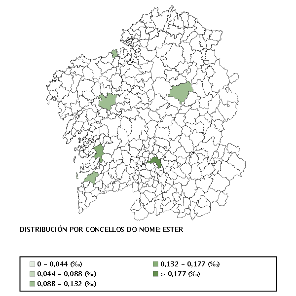 Nome bíblico (Ester no texto hebreo, Esthḗr no grego e Esther na Vulgata). Considérase de orixe persa, relacionado co persa (i)stareh 'estrela', con raíz nunha antiga palabra indoeuropea, *ster-, que aínda vive en moitas linguas: alemán Stern, inglés star, latín stella etc. Tamén se ten posto en relación coa divindade asirio-babilonia Istar, que, como apelativo, significaba 'deusa', e era a deusa do Amor. Ester, na tradición bíblica, de nome hebreo Hadassah 'mirto', era unha muller de extraordinaria beleza que casou co rei persa Axuero, polo que se converteu en raíña de Babilonia.