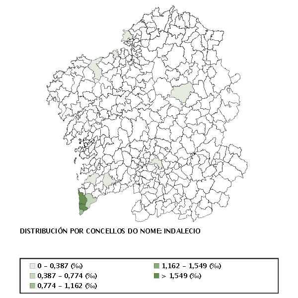 Indalecio Armesto (1837-1889), avogado e xornalista pontevedrés. Indalecio Díaz Baliño (1896-1952), delineante e escultor. Indalecio Varela Lenzano (1856-1940), musicólogo coruñés e académico cofundador da Real Academia Galega.